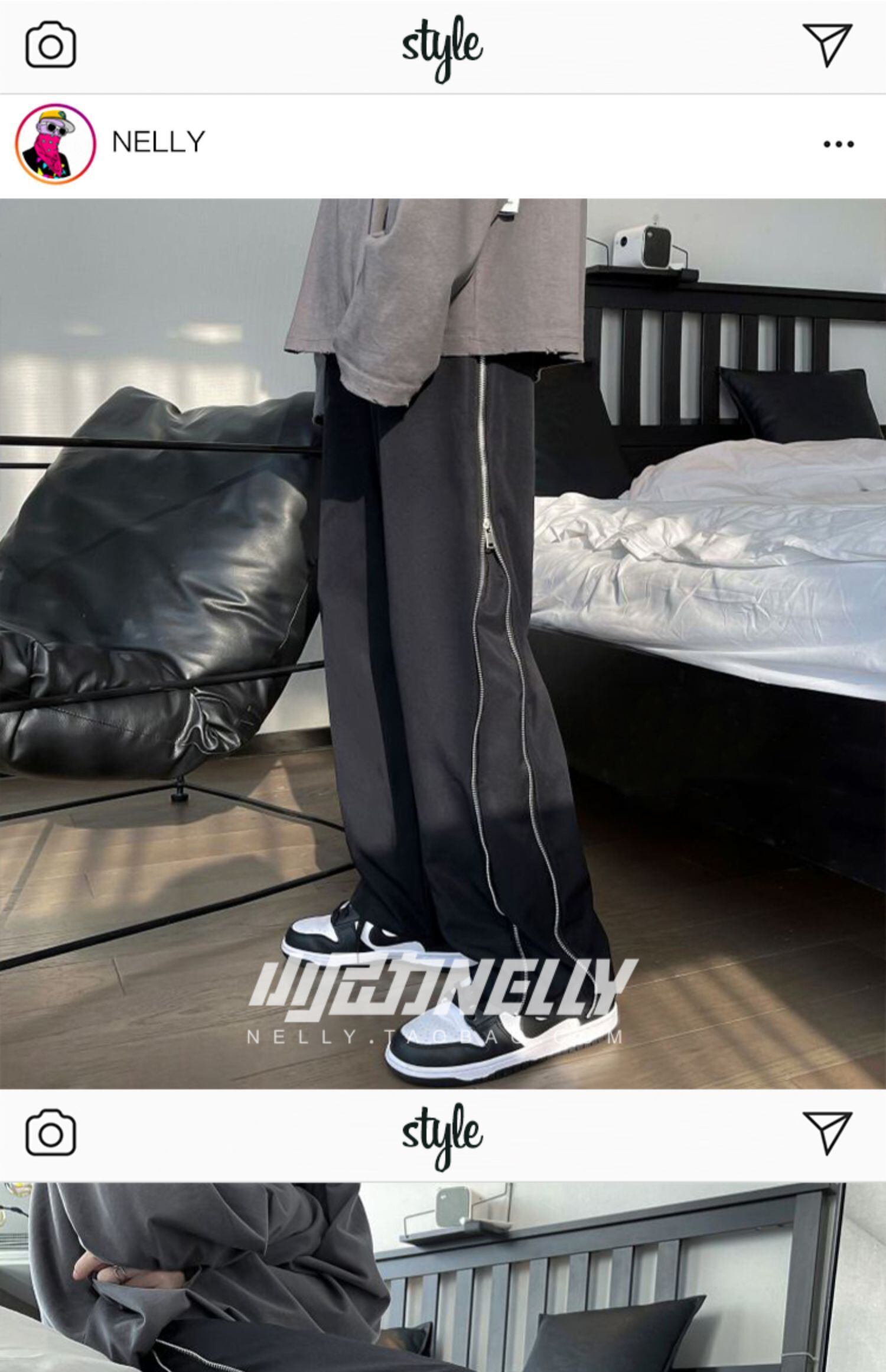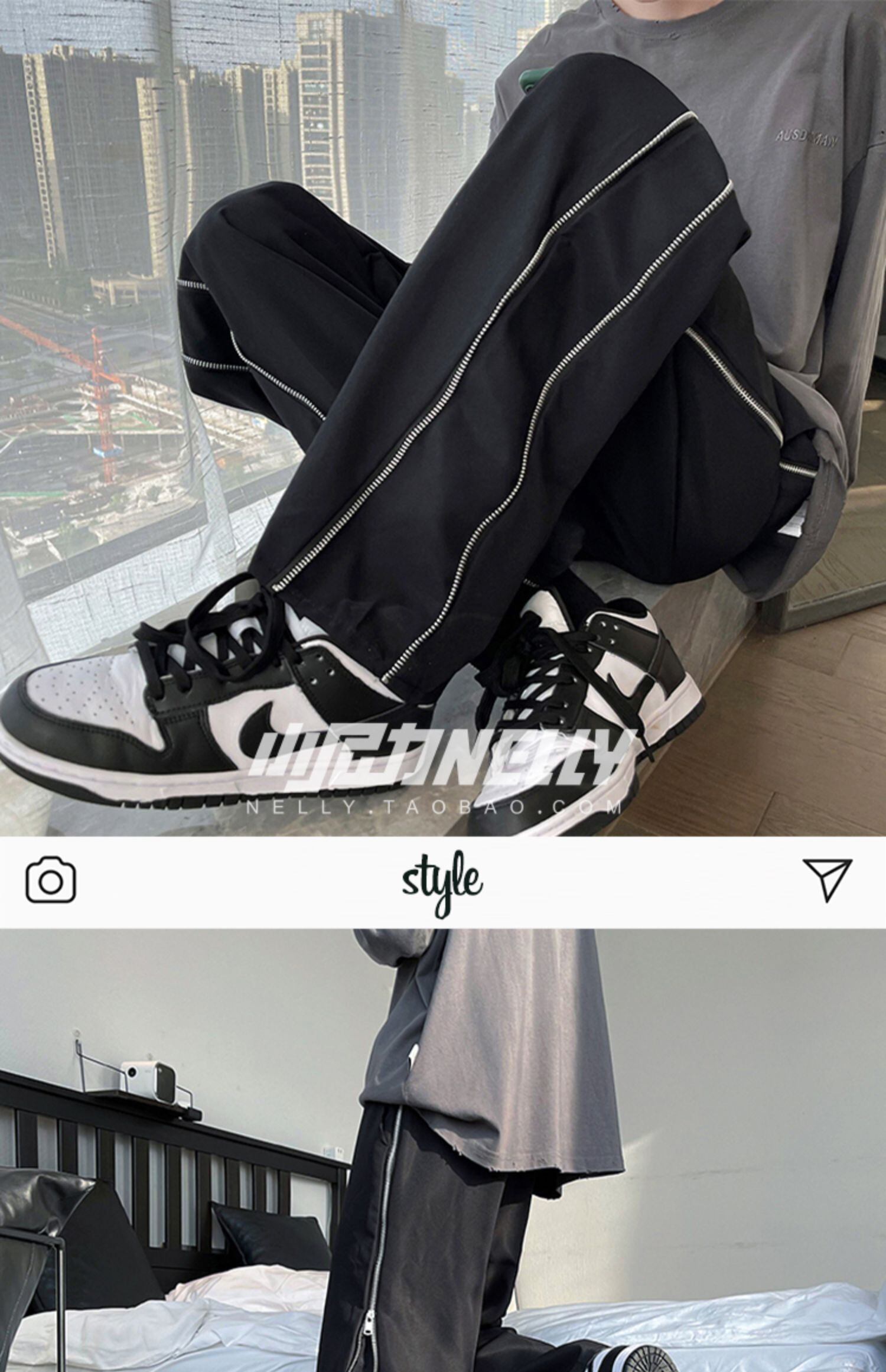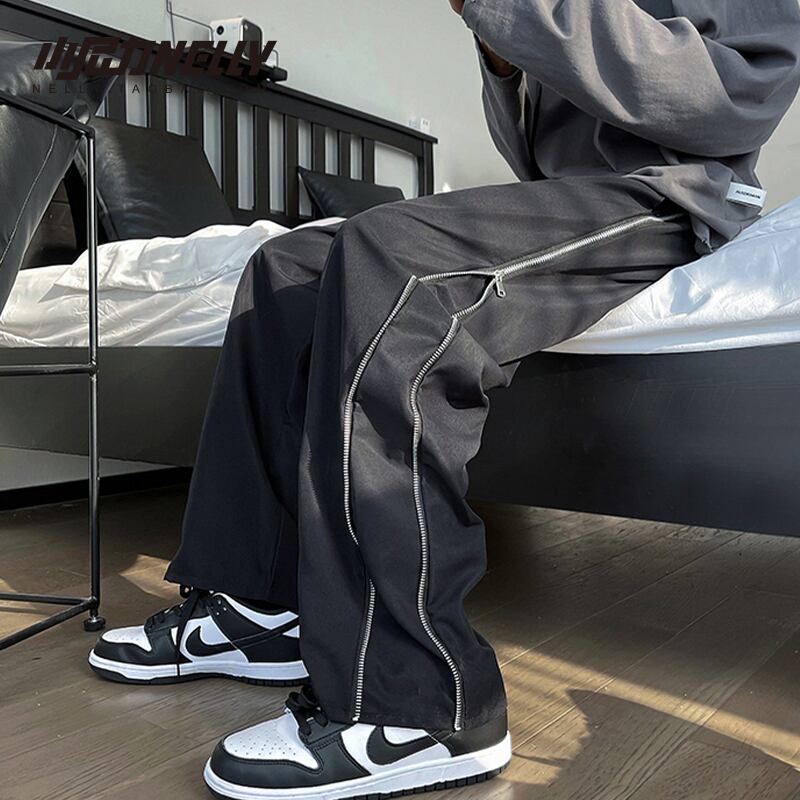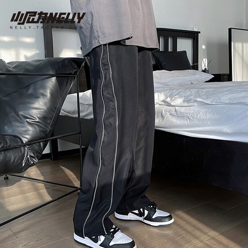 プリントスタンダードオータムカジュアルパンツ サイドジッパールーズ レトロ 秋物 12/9 メンズ アパレル 秋 冬 mi1758424606146