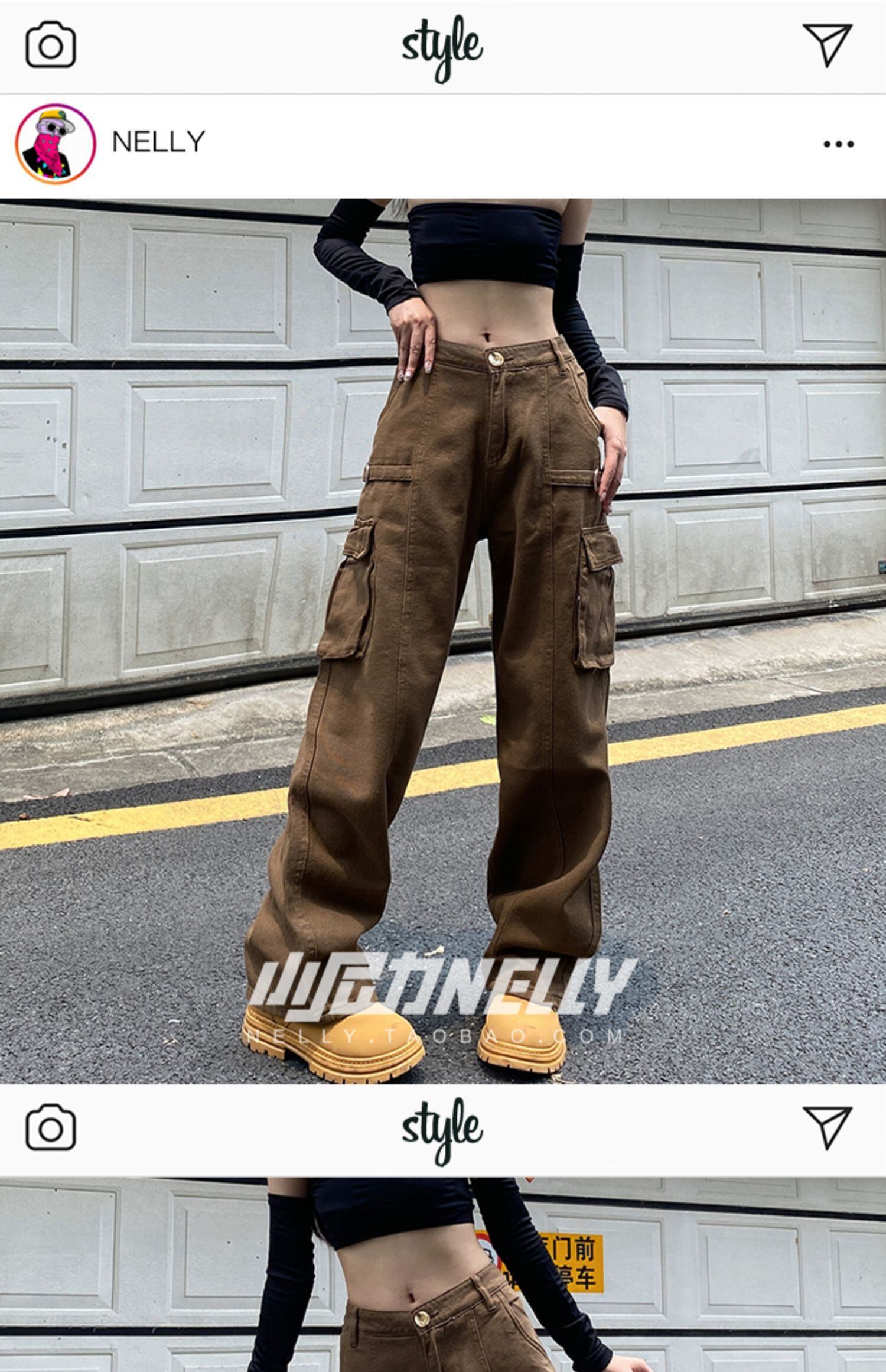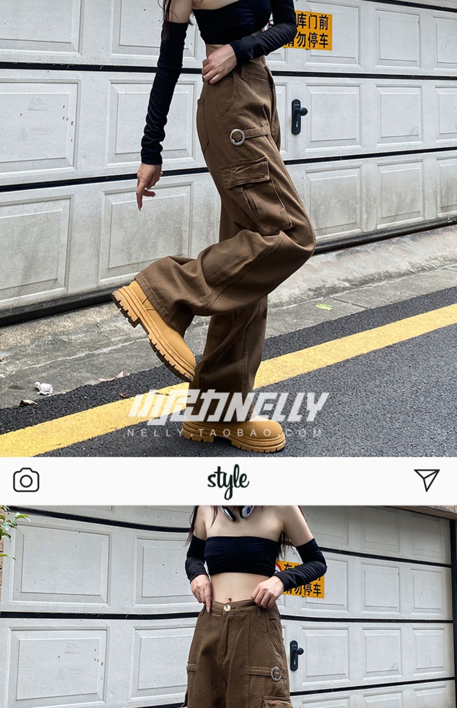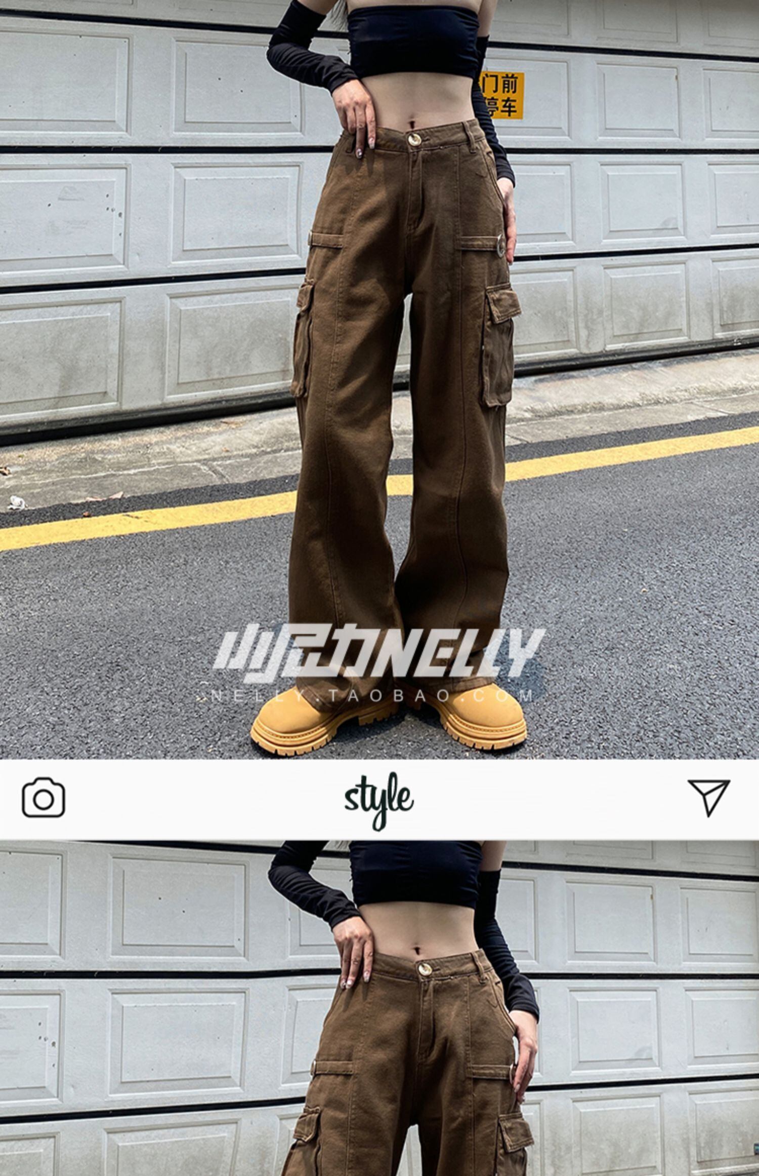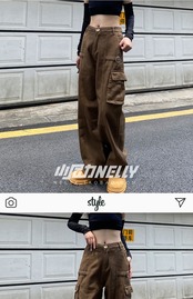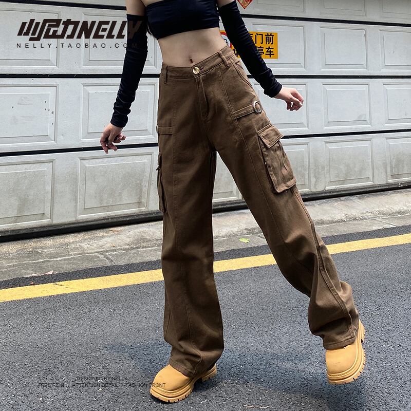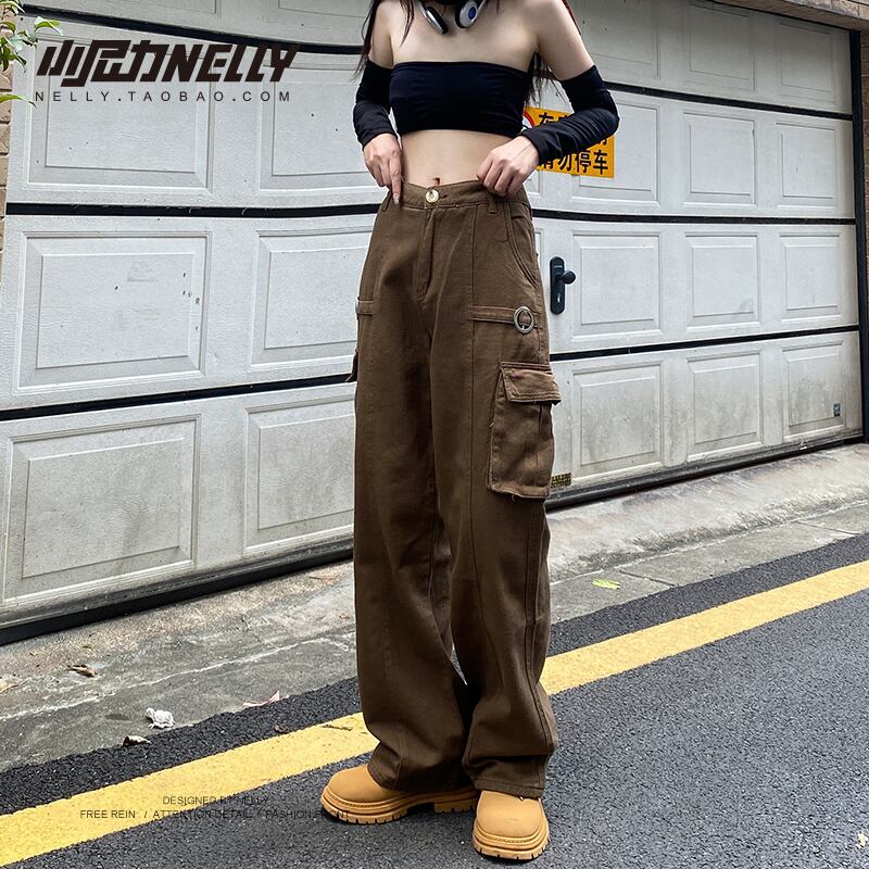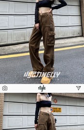 ブラウンハイウェストウェストルーズ薄手カジュアルパンツ ストリート ヨーロピアン 12/9 メンズ アパレル 秋 冬 mi1799218308732