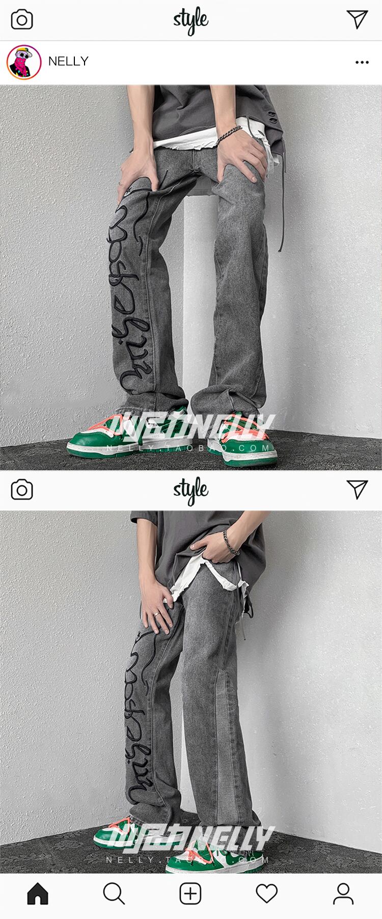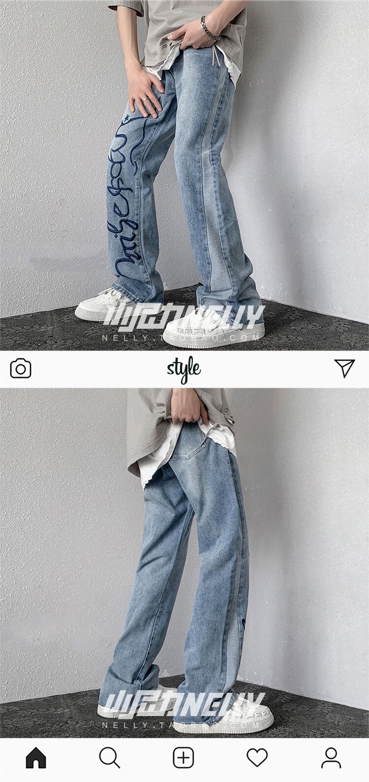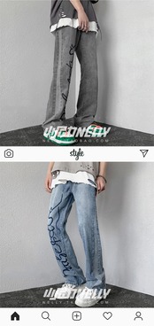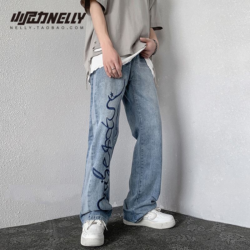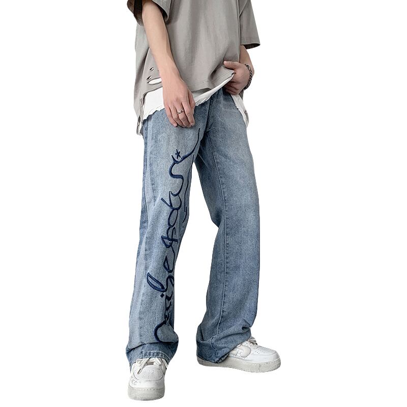 ジーンズ サマー薄手ルーズパンツ レッド ストリート 刺繍 夏物 12/9 メンズ アパレル 秋 冬 mi1777566359510