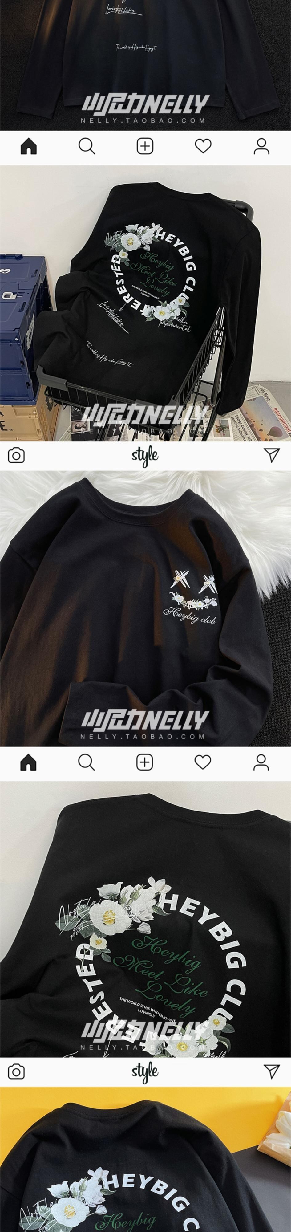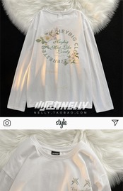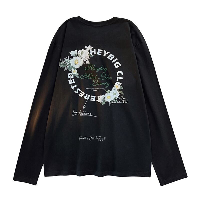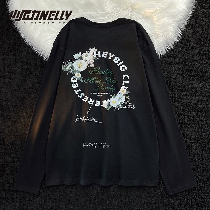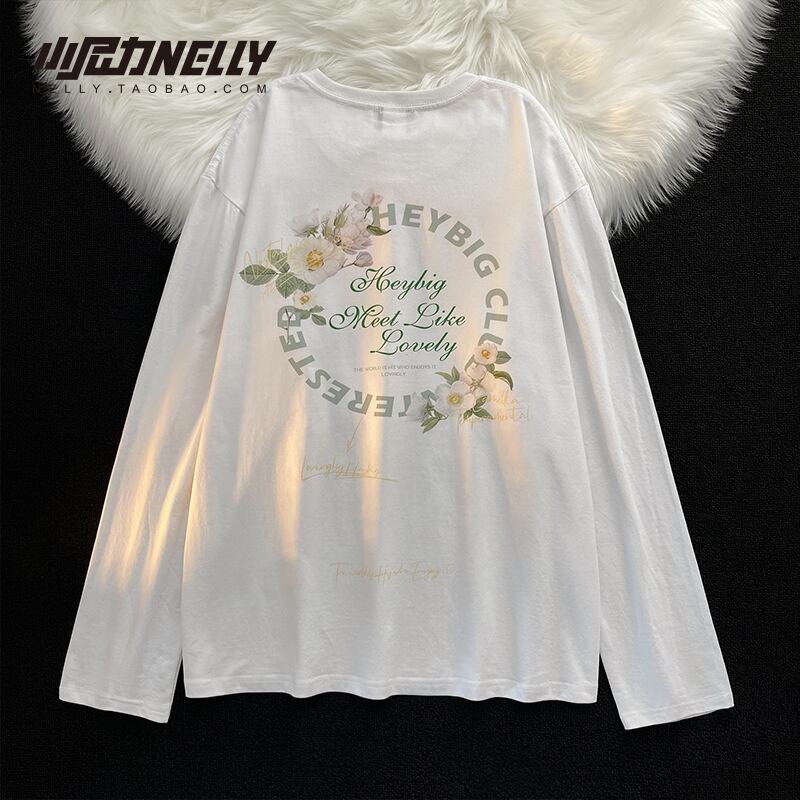 スタイルラウンドネックプリントTシャツ シャツ レディースルーズカジュアル ロング コットン ストリート Oネック 12/9 メンズ アパレル 秋 冬 mi1744288575554