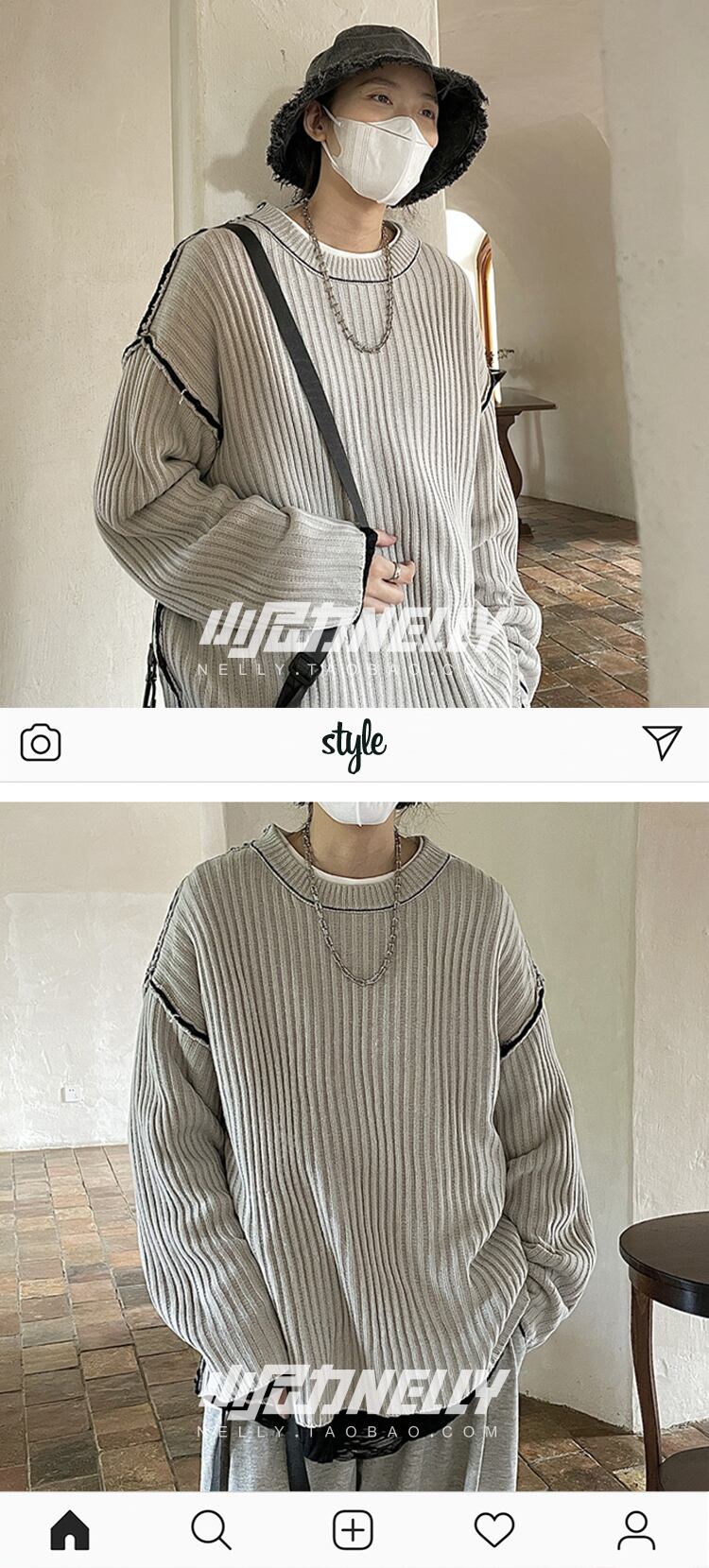 セーター ヴィンテージラウンドネックウィンターニットジャケット ストリート 冬物 Oネック ビンテージ 12/9 メンズ アパレル 秋 冬 mi1796489032539