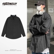 シャツ オータムルーズカジュアルソリッド カラージャケット ロング 秋物 ソリッドカラー 12/9 メンズ アパレル 秋 冬 mi1724987740117