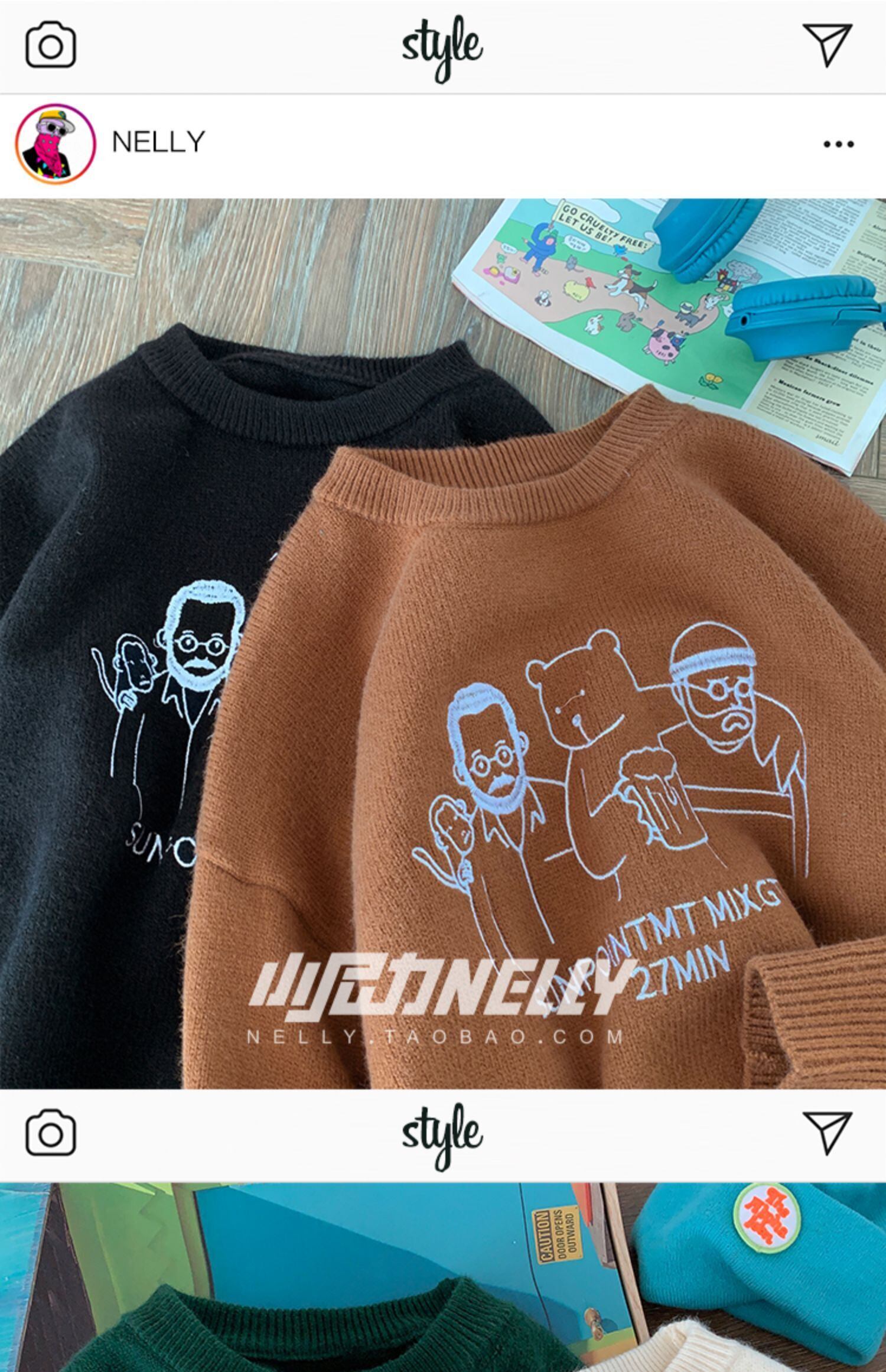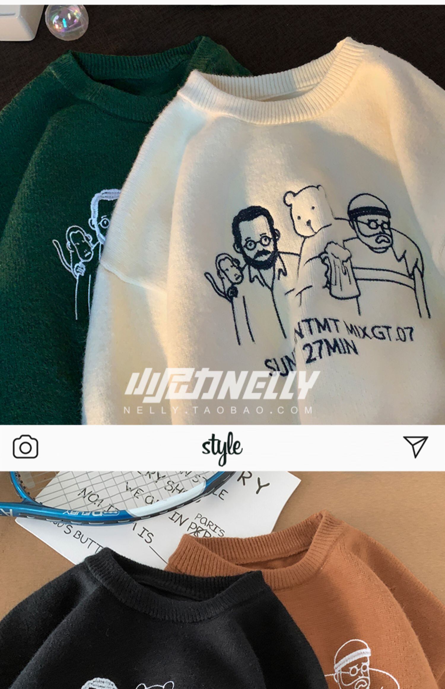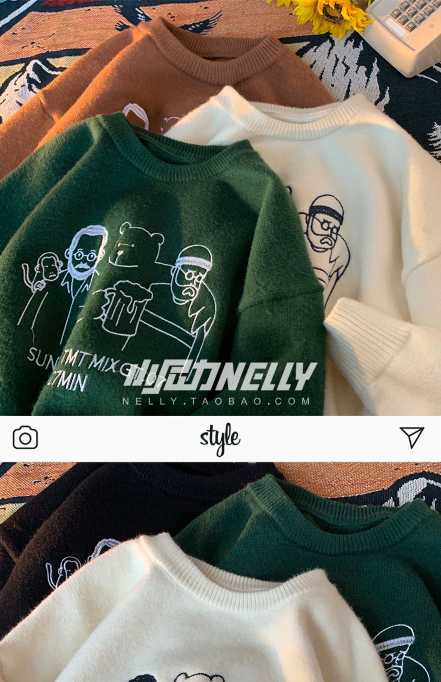 ニット オータムウィンタープリント柄セーター ルーズトップス 秋物 冬物 12/9 メンズ アパレル 秋 冬 mi1767693752771