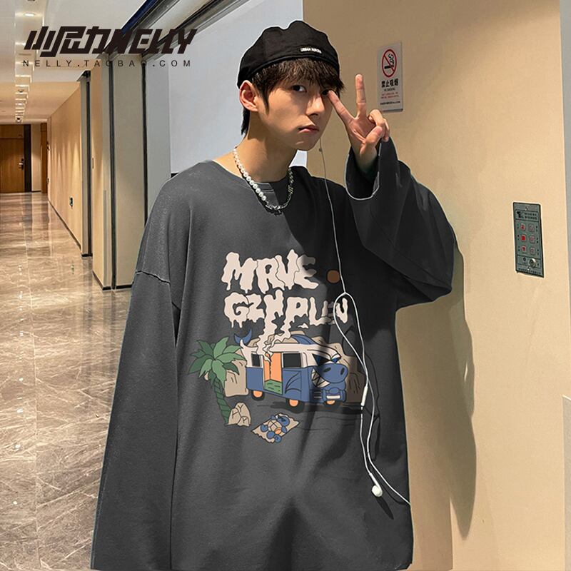 セーター ルーズTシャツ シャツ オータムスタイルラウンドネック ロング ストリート 秋物 Oネック 12/9 メンズ アパレル 秋 冬 mi1725976477448