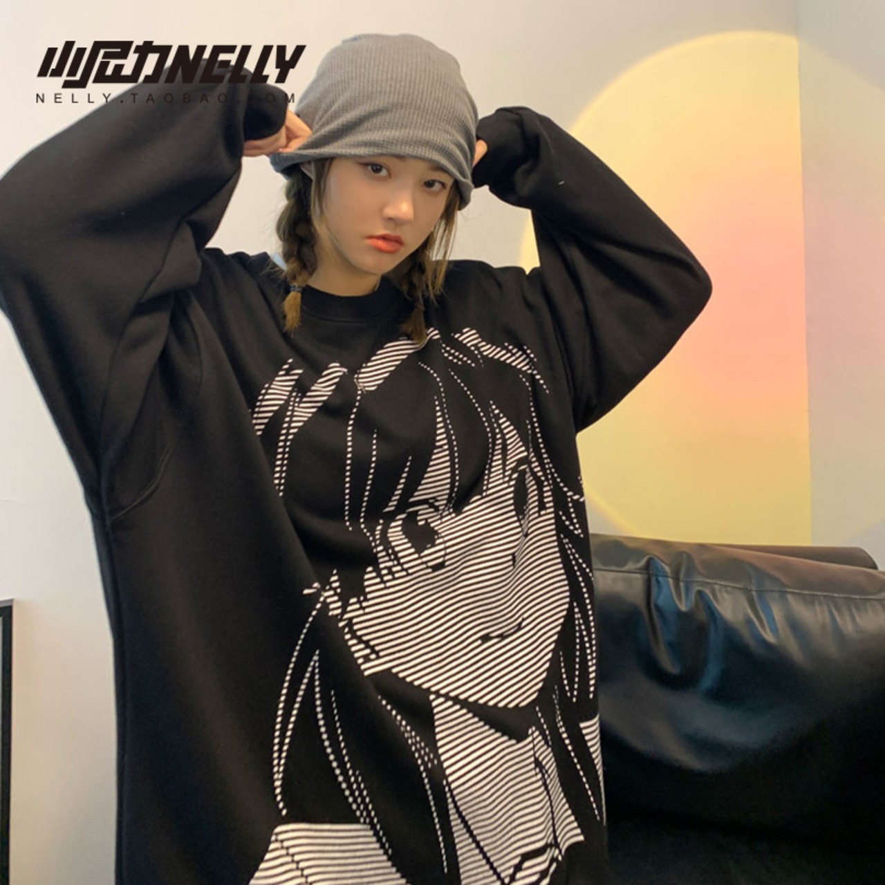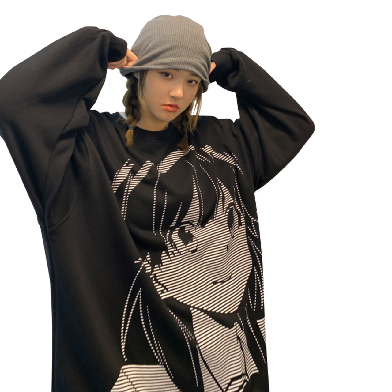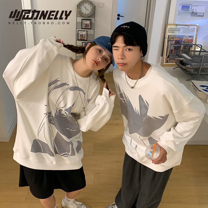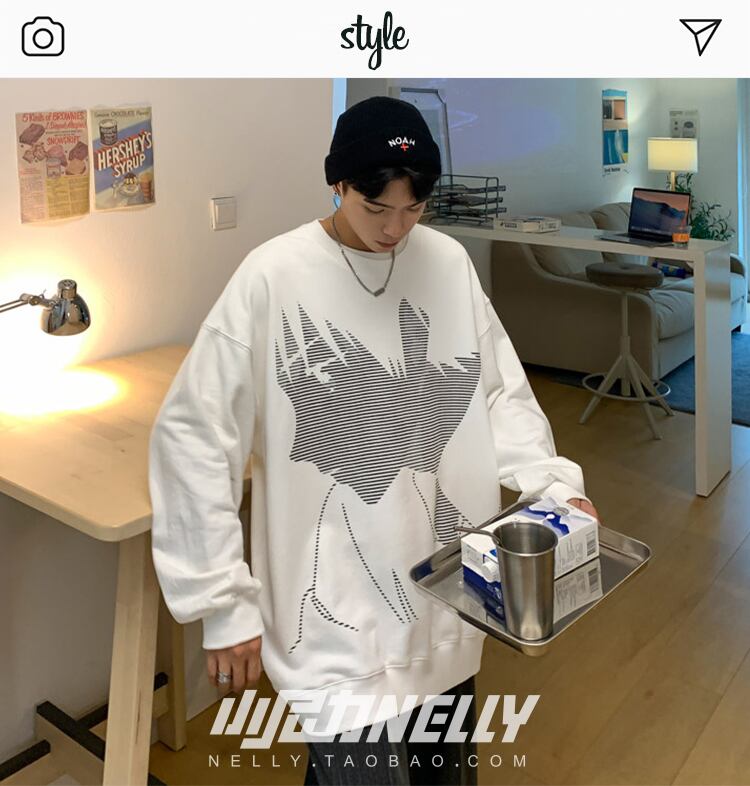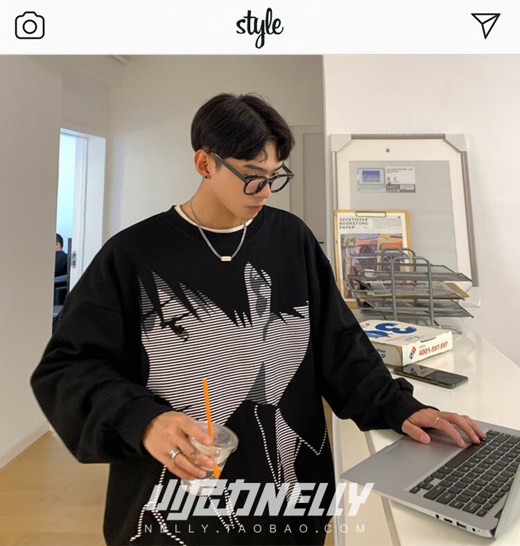 ラウンドネックセーター スタイルルーズカジュアルプルオーバー 薄手コート プリント柄トップス ロング Oネック 12/9 メンズ アパレル 秋 冬 mi1772585942589