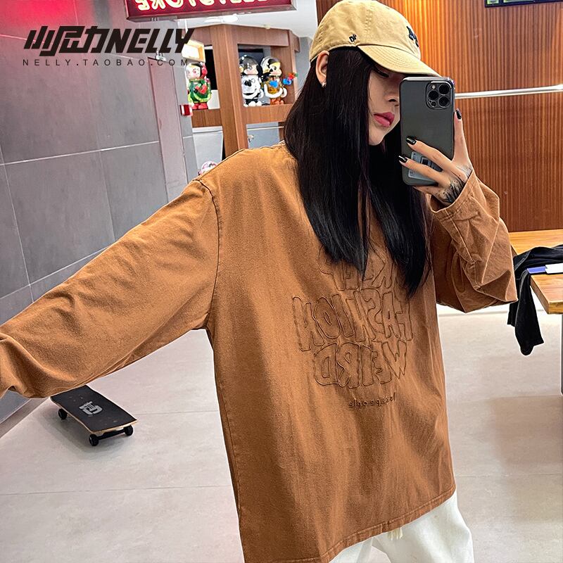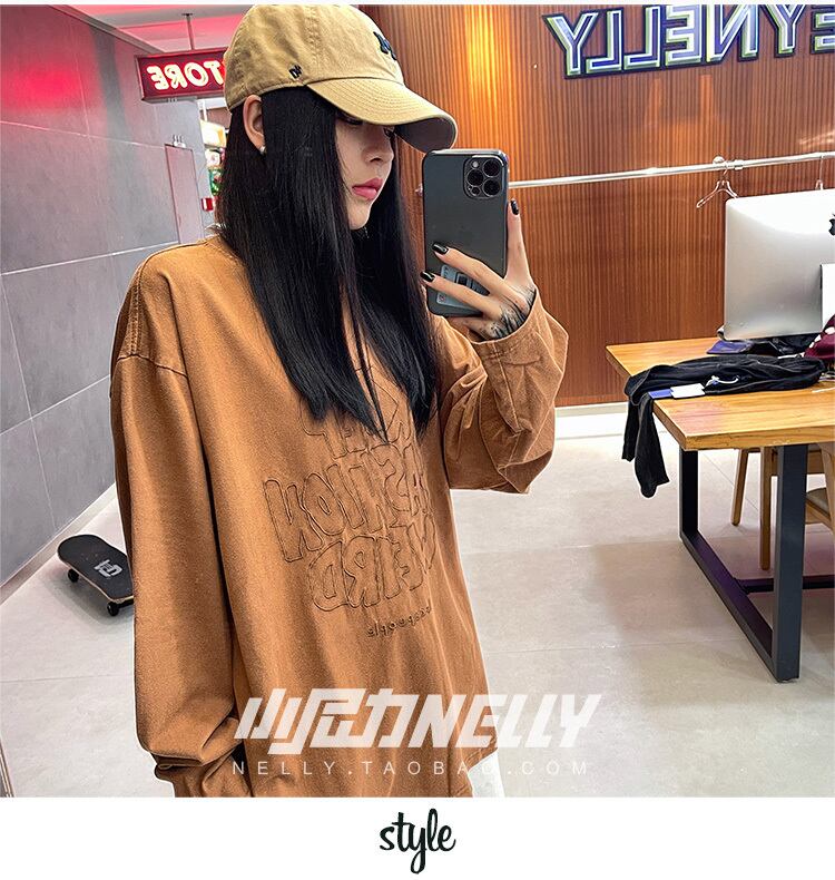Tシャツ シャツ オータムルーズラウンドネックセーター ロング ストリート 秋物 Oネック 12/9 メンズ アパレル 秋 冬 mi1774300165999