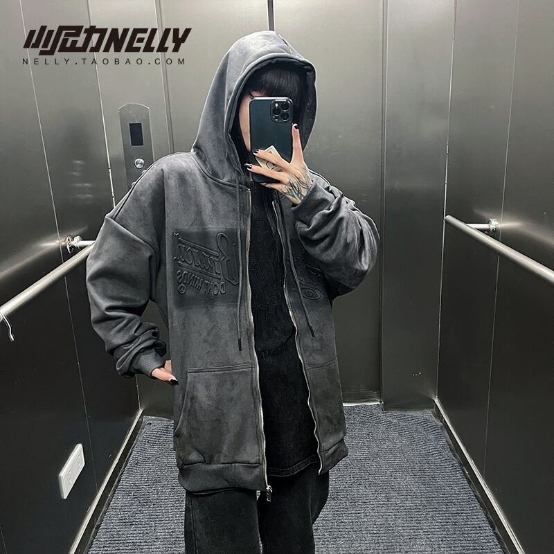 スタンダードスウェードフードセーター スプリングオータムルーズコート レトロ 大きめサイズ 春物 秋物 12/9 メンズ アパレル 秋 冬 mi1745101782955