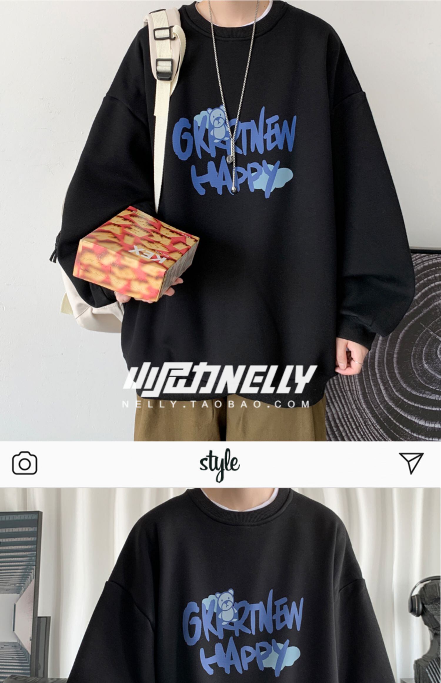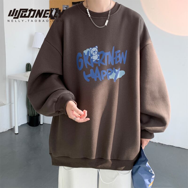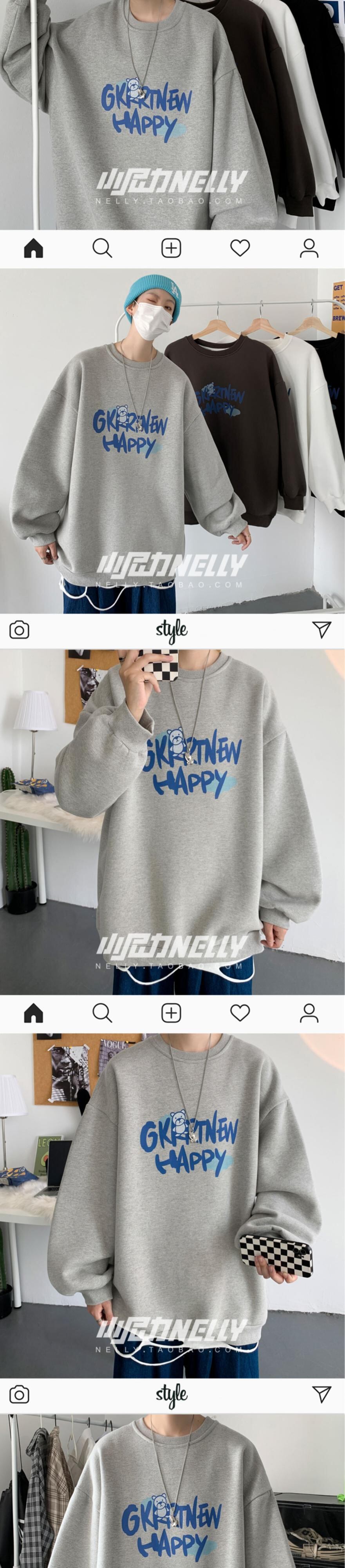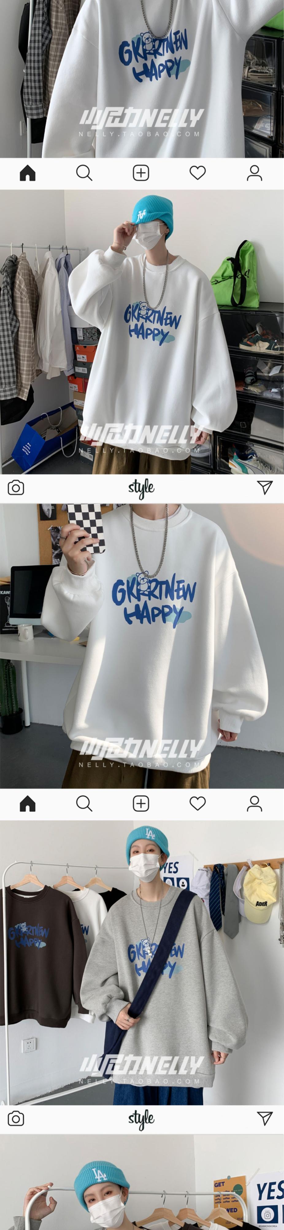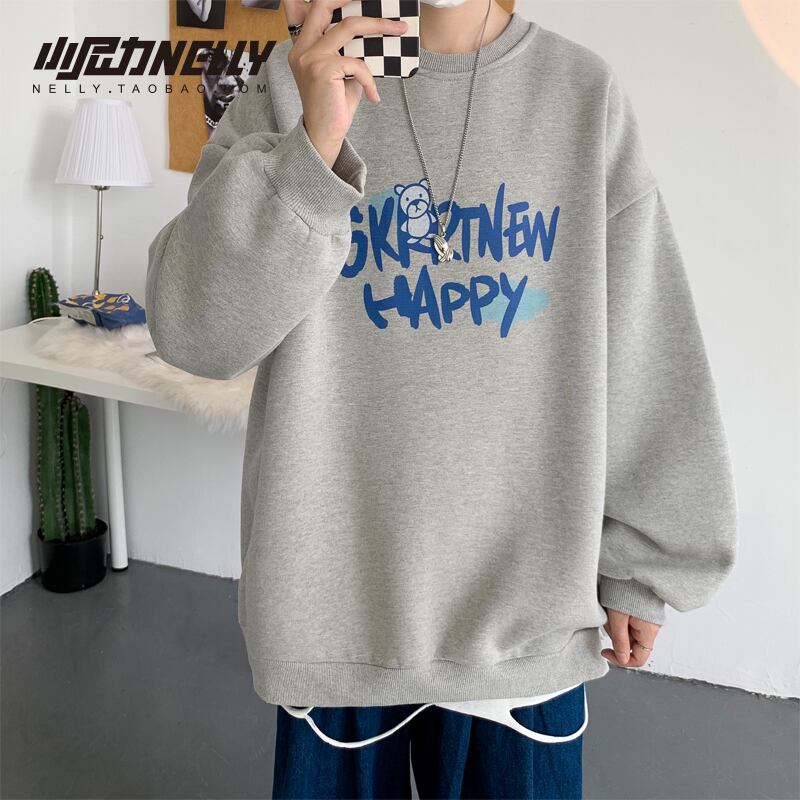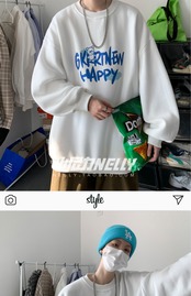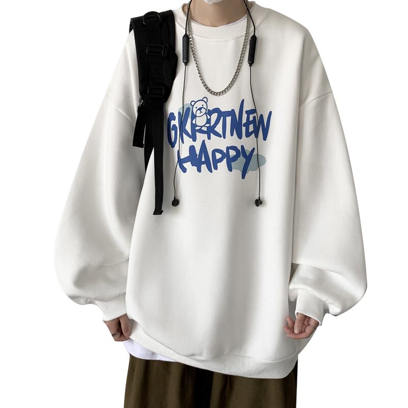 ホワイトラウンドネックセーター スプリングオータム薄手ルーズトップス コート 春物 秋物 Oネック 12/9 メンズ アパレル 秋 冬 mi1720478145037