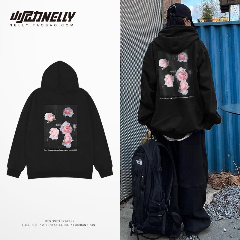 カジュアルバックフローラルパターンプリント柄プルオーバー ポケットフードセーター 花柄 12/9 メンズ アパレル 秋 冬 mi1757475072074