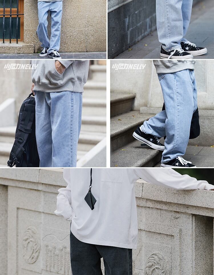 ストレッチウェストジーンズ ルーズパンツ サマー薄手スタイルワイドレッグカジュアル エラスティック 伸縮 夏物 ワイドパンツ 12/9 メンズ アパレル 秋 冬 mi1767831709691