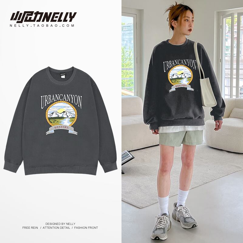 スタンダードプリント柄ラウンドネックセーター レディースルーズジャケット レトロ Oネック 12/9 メンズ アパレル 秋 冬 mi1731912493863